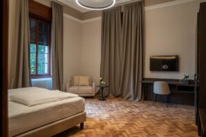 Affreschi, parquet antichi, ambienti luminosi e una scala d’epoca accolgono gli ospiti in un’atmosfera calda e ricercata.